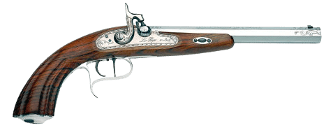 PISTOL: Original and Replica single shot pistols “In the Spirit of the Originals” must be used. The height of the foresight can be varied so long as it remains the original style. Modern pistols of traditional design made with click adjustable sights are permitted so long as no adjustments are made during a match.
